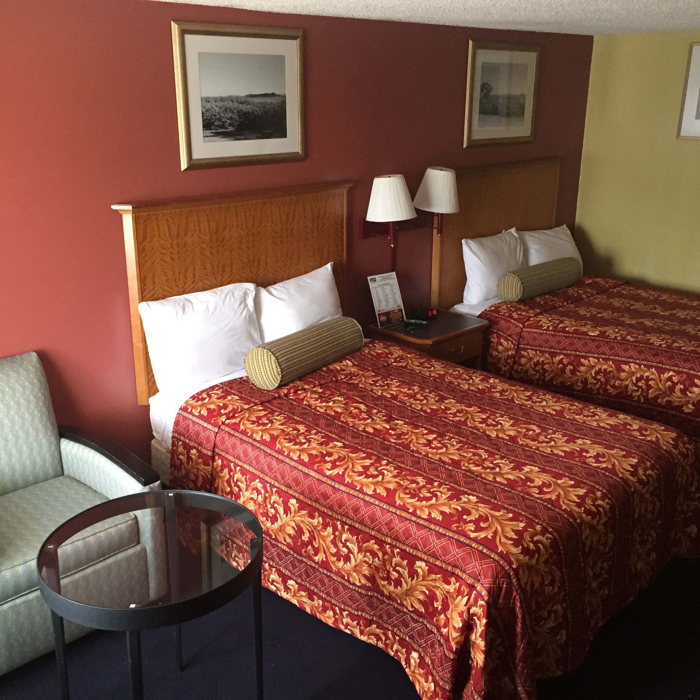Spacious room with two Full-size beds and other amenities such as microwave, refrigerator, flat screen 40 inch television, and free wi-fi. All televisions also include wi-fi access to allow streaming of YouTube videos and other apps. Enjoy your stay by lounging around in the bedroom or visiting the many attractions around us.
