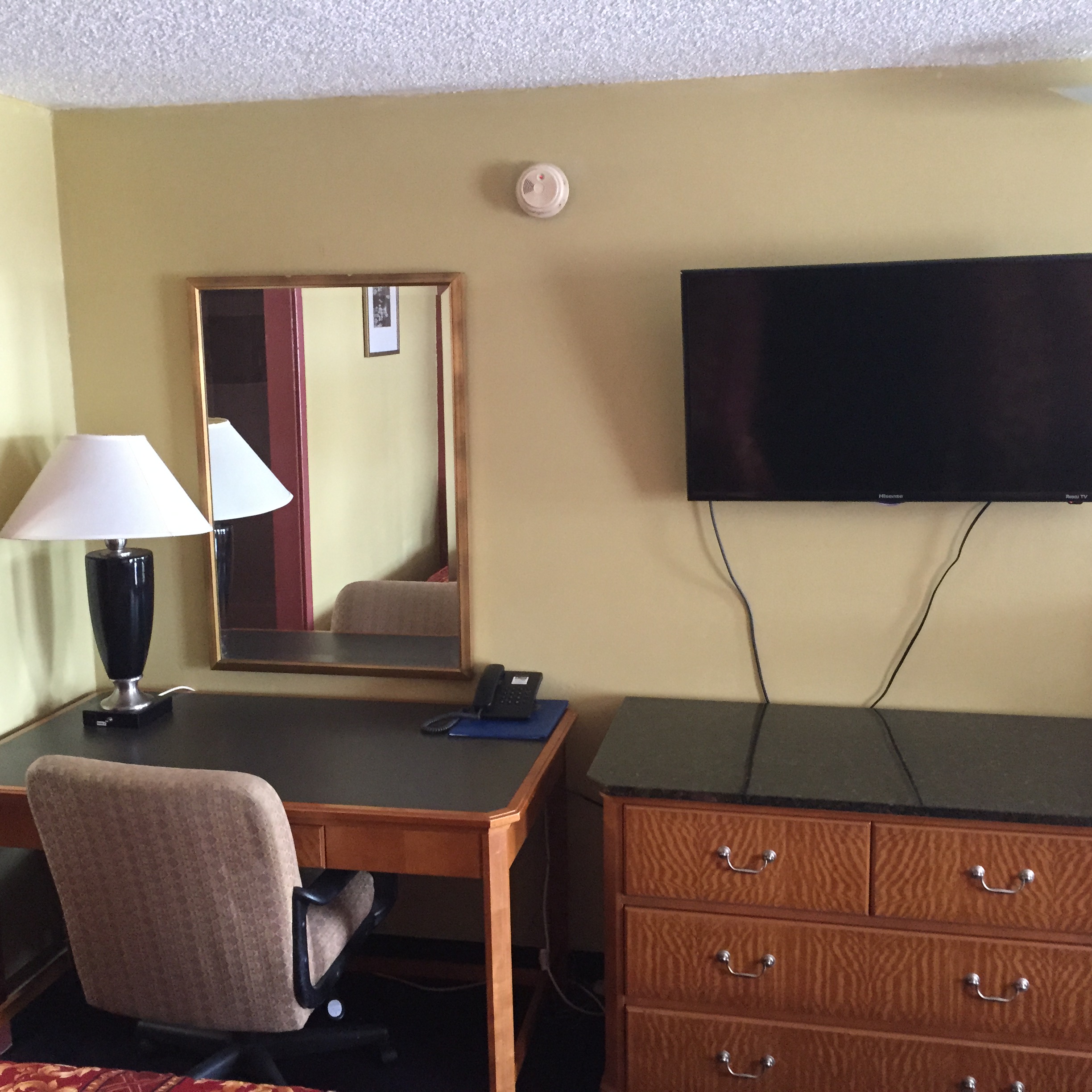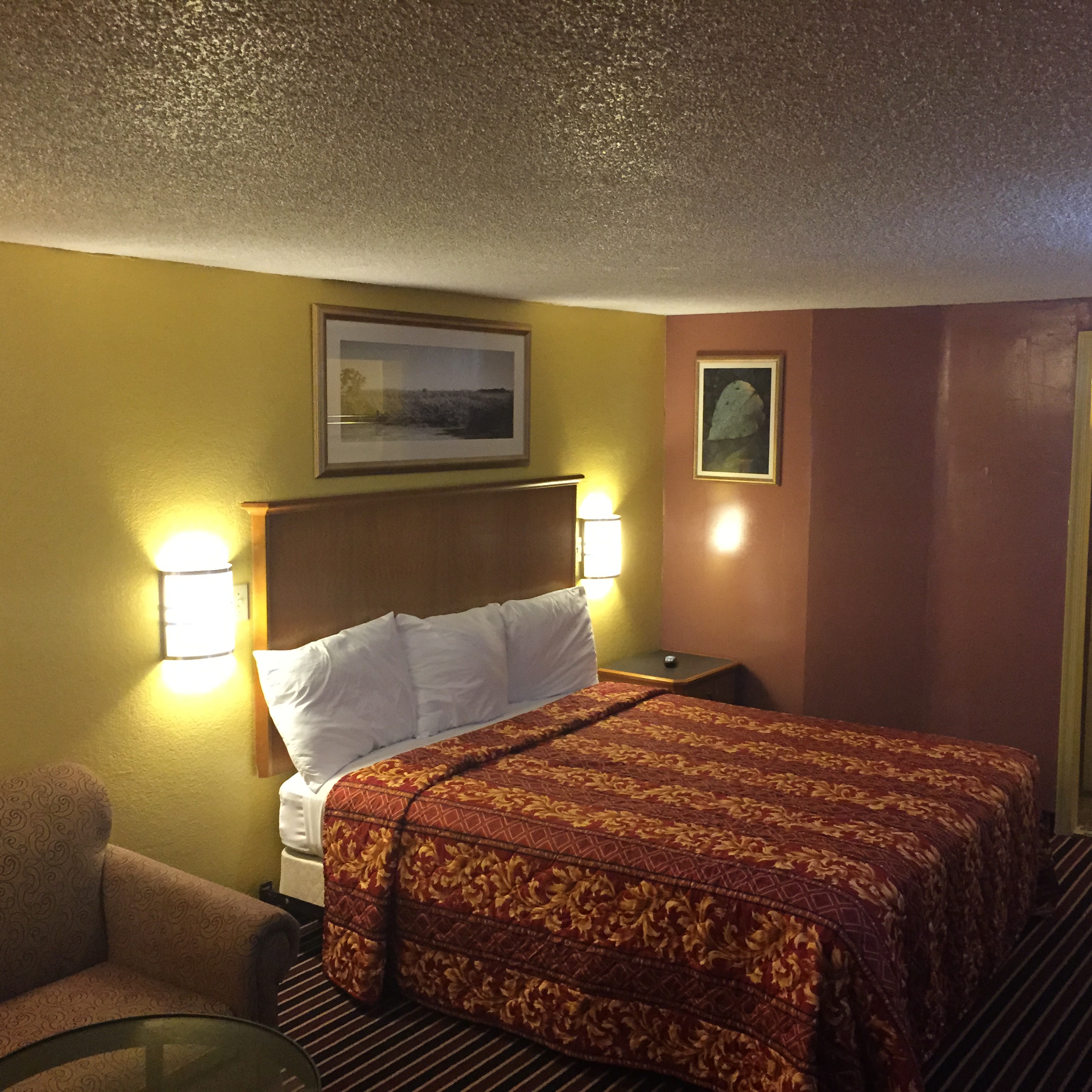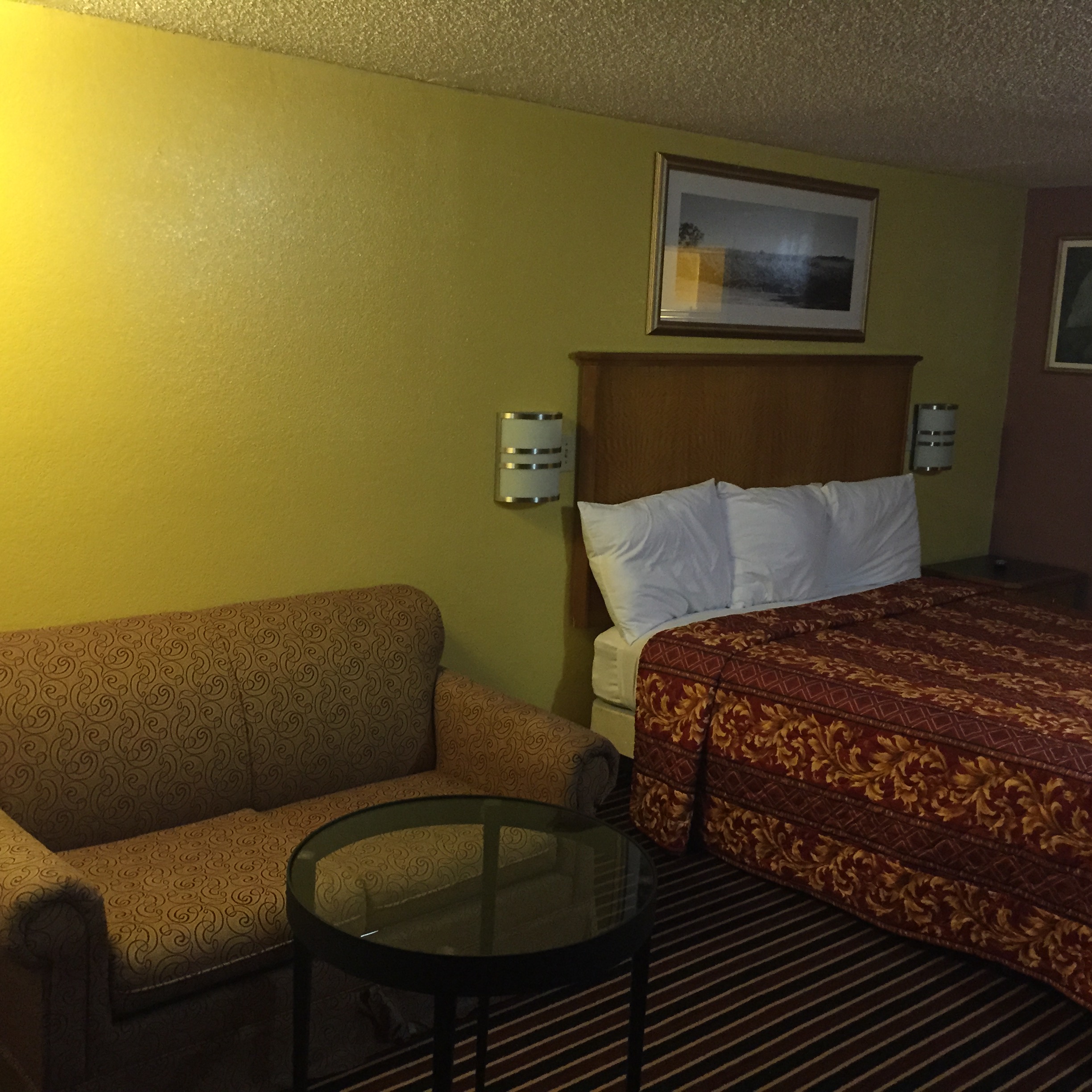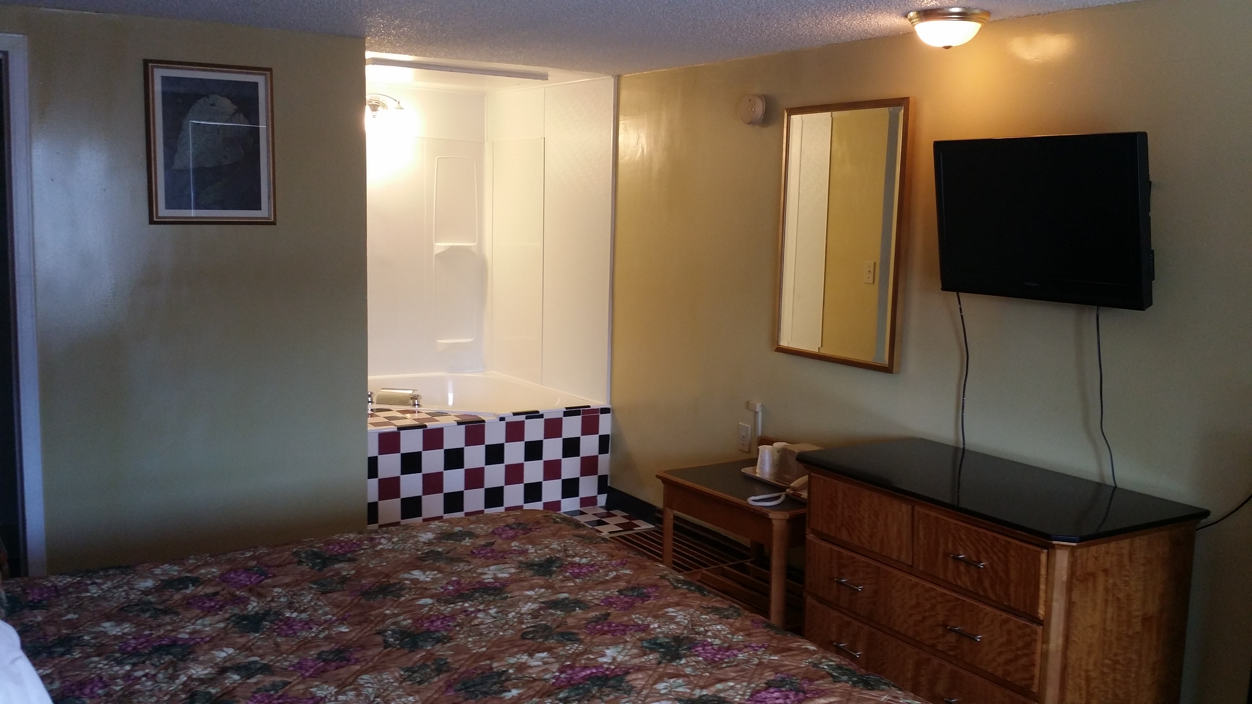 Spacious room with comfortable king size bedroom and other amenities such microwave, refrigerator, flat screen television, and free wi-fi. Our TV's all have wi-fi capability that allow you to stream favorite YouTube videos and other apps. Enjoy your stay by lounging around in the bedroom or visiting the many attractions available around us.
